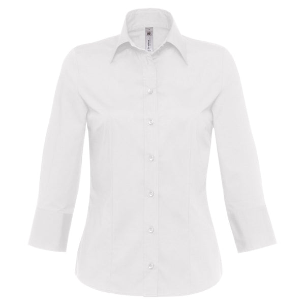 B&C Women's White Milano 3/4 Sleeved Poplin Shirt