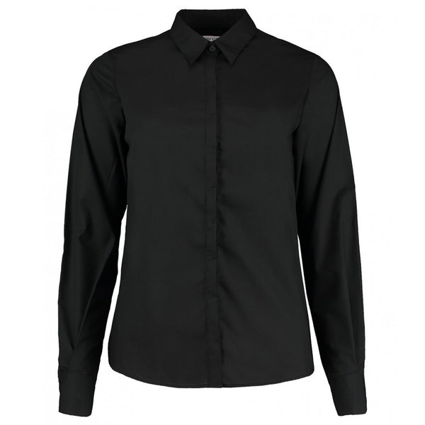 Kustom Kit Women's Black Long Sleeve Tailored Contemporary Business Shirt