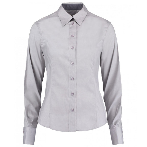 Kustom Kit Women's Silver/Charcoal Premium Long Sleeve Contrast Tailored Fit Oxford Shirt