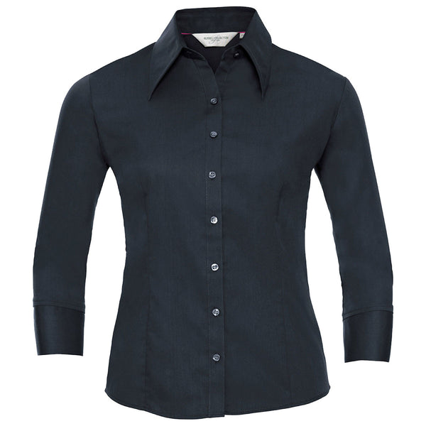 Russell Collection Women's Navy 3/4 Sleeve Tencel Fitted Shirt