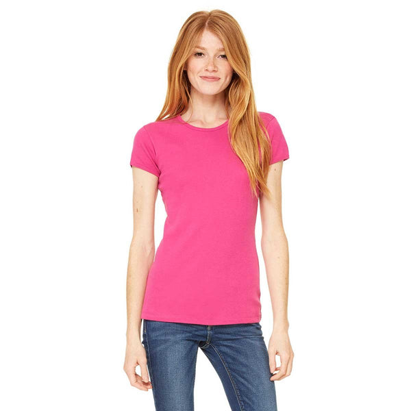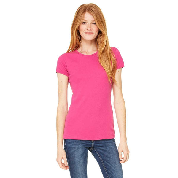 Bella + Canvas Women's Fuchsia Stretch Rib Short-Sleeve T-Shirt