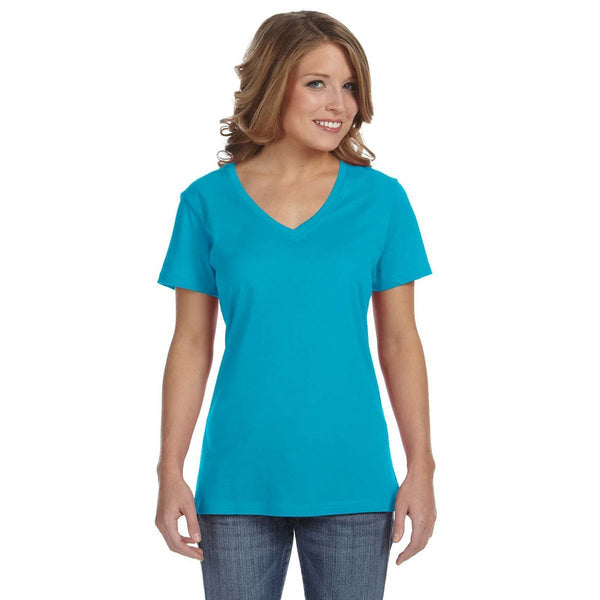 Anvil Women's Carribean Blue Ringspun Featherweight V-Neck T-Shirt