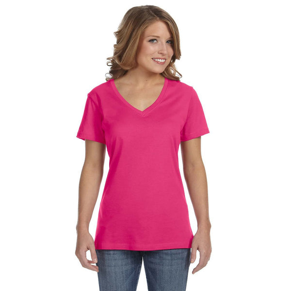 Anvil Women's Hot Pink Ringspun Featherweight V-Neck T-Shirt