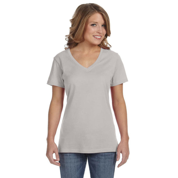 Anvil Women's Silver Ringspun Featherweight V-Neck T-Shirt
