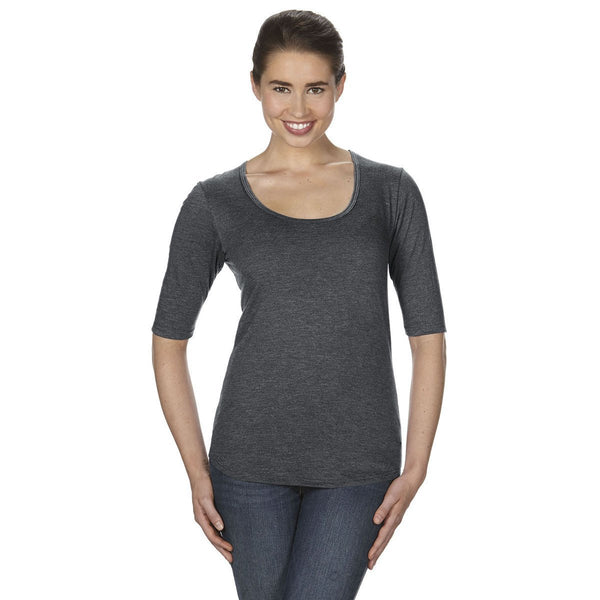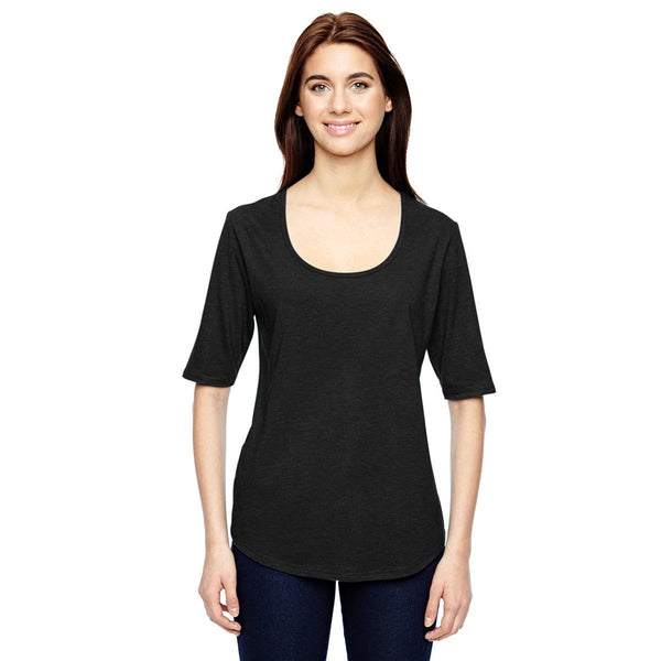Anvil Women's Black Triblend Deep Scoop Half-Sleeve T-Shirt