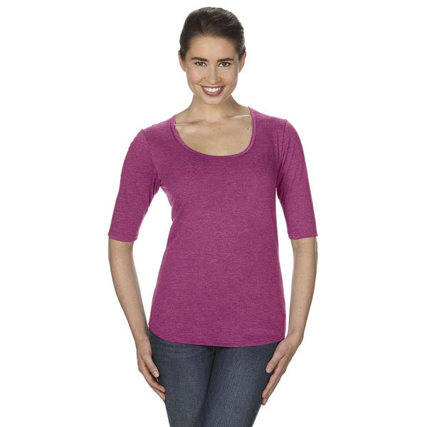 Anvil Women's Heather Raspberry Triblend Deep Scoop Half-Sleeve T-Shirt