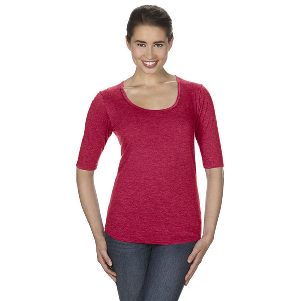 Anvil Women's Heather Red Triblend Deep Scoop Half-Sleeve T-Shirt