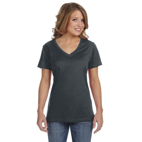 Anvil Women's Heather Dark Grey Ringspun Featherweight V-Neck T-Shirt