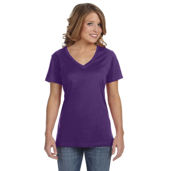 Anvil Women's Heather Purple Ringspun Featherweight V-Neck T-Shirt