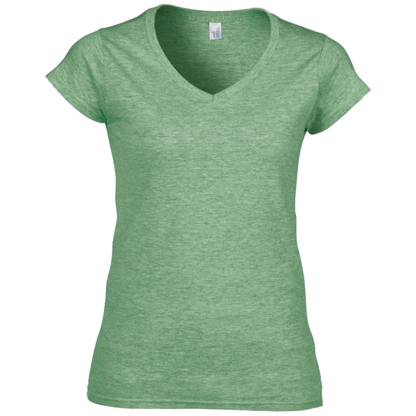 Gildan Women's Heather Irish Green SoftStyle V Neck T-Shirt