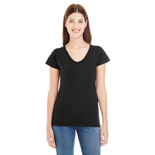 Anvil Women's Black Lightweight Fitted V-Neck Tee