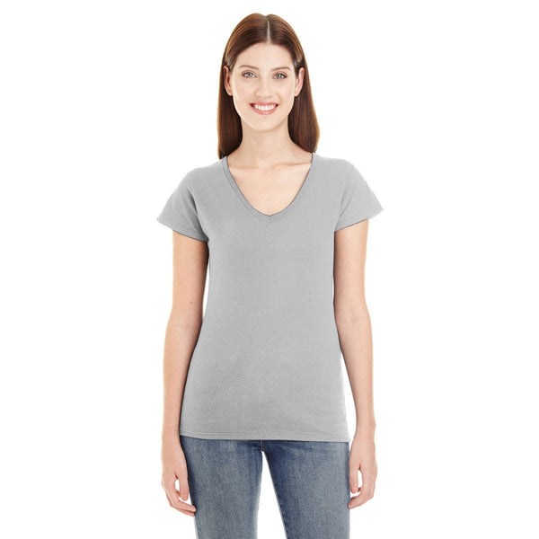 Anvil Women's Heather Grey Lightweight Fitted V-Neck Tee