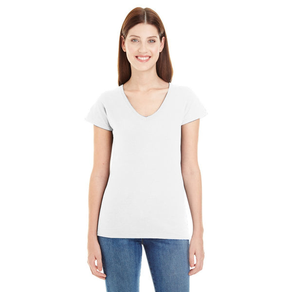 Anvil Women's White Lightweight Fitted V-Neck Tee