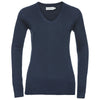 Made using an expert blend of cotton and acrylic CottonBlend, this customisable Russell Collection Women's French Navy Cotton Acrylic V Neck Sweater offers the perfect combination of casual yet professional style. Ideal to be worn over a shirt in many corporate working environments, this versatile sweater is both flattering and comfortable. Featuring set-in sleeves, a ribbed trim and elasticated cuffs and hem for maximum comfort, this sweater is also machine washable at a convenient 40 Degree C. Also giving you the opportunity to add your very own custom logo for instant company personalisation, this sweater will make an asset to many corporate workforce uniforms.