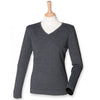 Henbury Women's Grey Marl Lightweight Cotton Acrylic V Neck Sweater