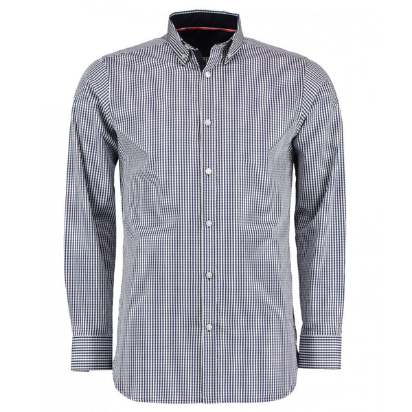 Clayton and Ford Men's Navy/White Gingham Long Sleeve Tailored Shirt