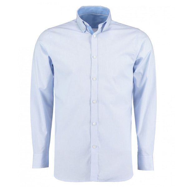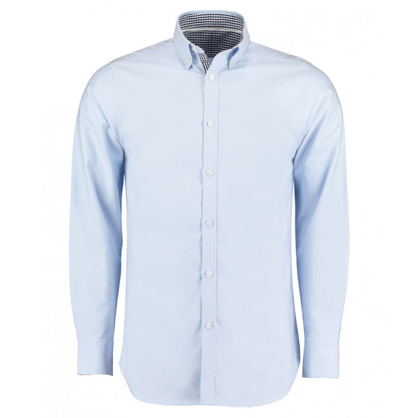 Clayton and Ford Men's Light Blue/Navy Long Sleeve Contrast Tailored Oxford Shirt