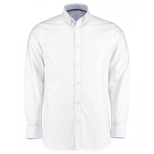 Clayton and Ford Men's White/Light Blue Long Sleeve Contrast Tailored Oxford Shirt