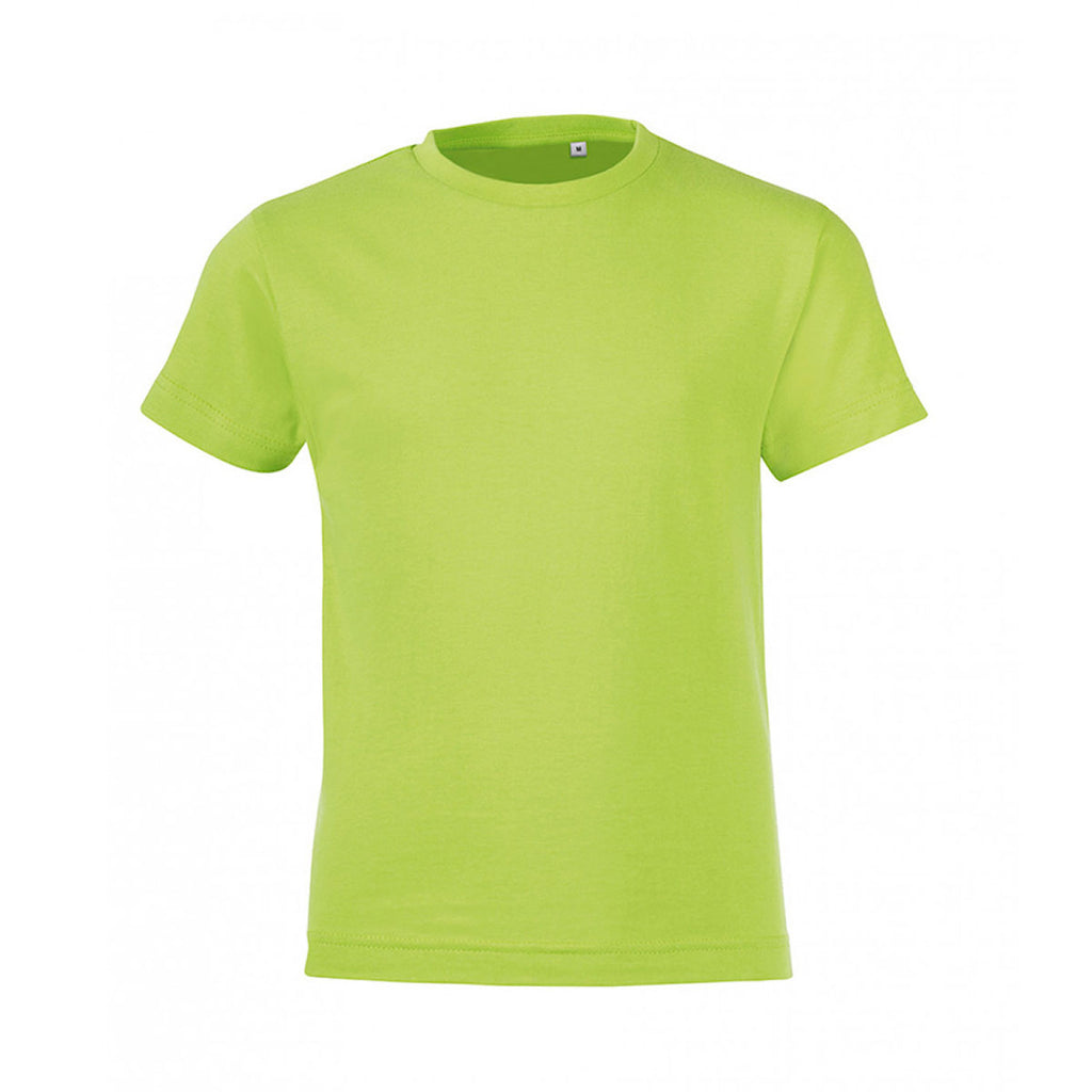 With its classic styling and 100% cotton construction, kids will love the logoed SOL'S Youth Apple Green Regent Fit T-Shirt. This tee is ready to be printed with your custom logo and used for brand awareness campaigns, and there are a range of popular colours to choose from. It is exceptionally soft and comfortable thanks to the ringspun semi-combed cotton, and it has contemporary style supplied by the elastane ribbed collar and taped neck. Twin needle stitching ensure this tee will last the distance, whilst the 150 GSM weight makes it ideal for wearing all year round. Ready to be customised, start your promotional campaign with Merchology today.