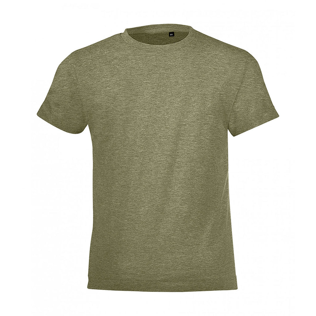 With its classic styling and 100% cotton construction, kids will love the logoed SOL'S Youth Heather Khaki Regent Fit T-Shirt. This tee is ready to be printed with your custom logo and used for brand awareness campaigns, and there are a range of popular colours to choose from. It is exceptionally soft and comfortable thanks to the ringspun semi-combed cotton, and it has contemporary style supplied by the elastane ribbed collar and taped neck. Twin needle stitching ensure this tee will last the distance, whilst the 150 GSM weight makes it ideal for wearing all year round. Ready to be customised, start your promotional campaign with Merchology today.