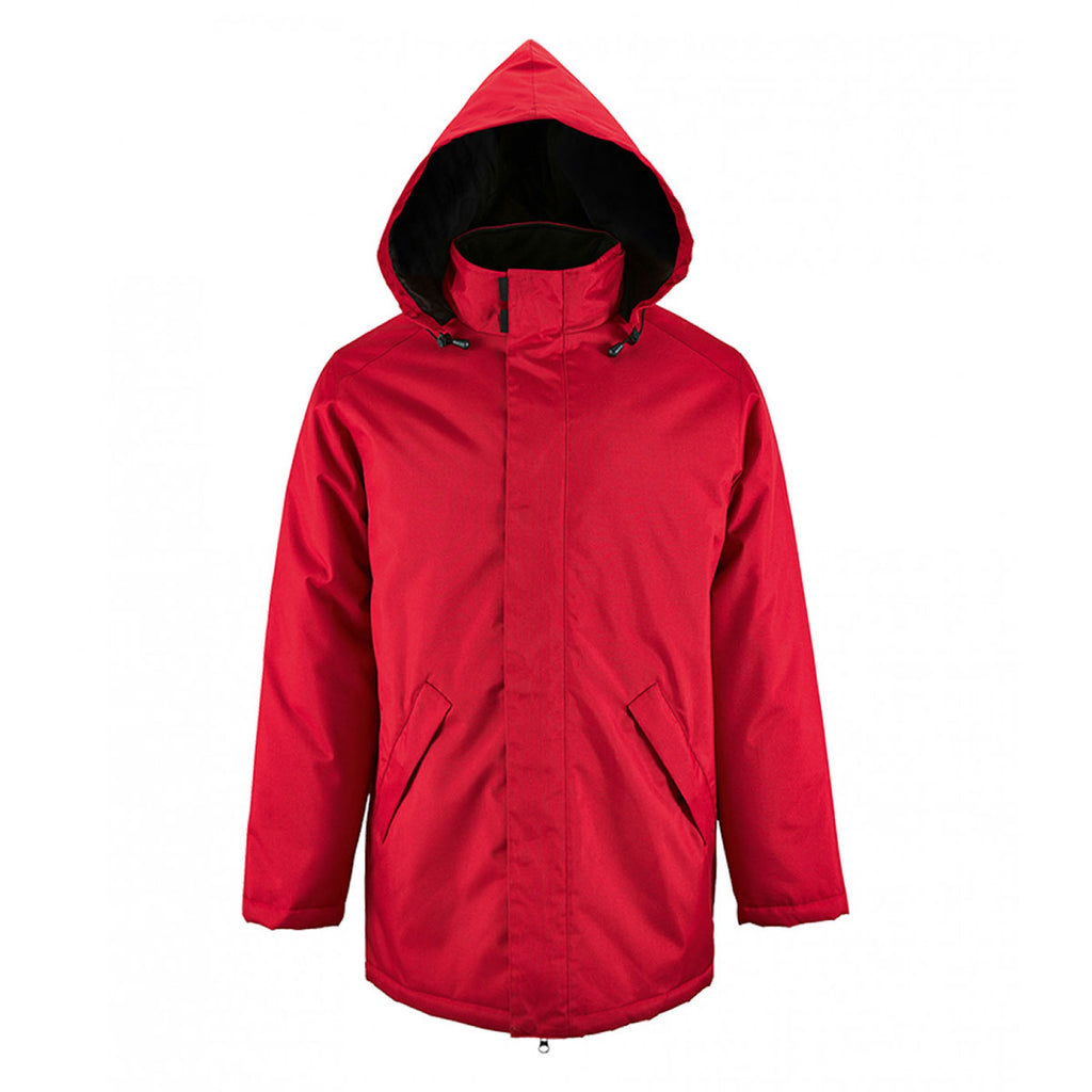 The logoed SOL'S Unisex Red Robyn Padded Jacket is a simple, smart and stylish jacket for the cool and rainy days. Add your company logo on this jacket made from polyester outer with PVC coating and enjoy increased brand awareness. Anyone will appreciate this jacket for its showerproof and windproof design, as well as the concealed detachable hood with adjusters and fleece lined collar. It has a full-length zip with stud and tear release storm flap, and plenty of storage thanks to two front pockets and one internal pocket. Final details include tear release adjustable cuffs and open hem. Offered in a range of colours, all that's left to do is have yours embroidered and use for giveaways.