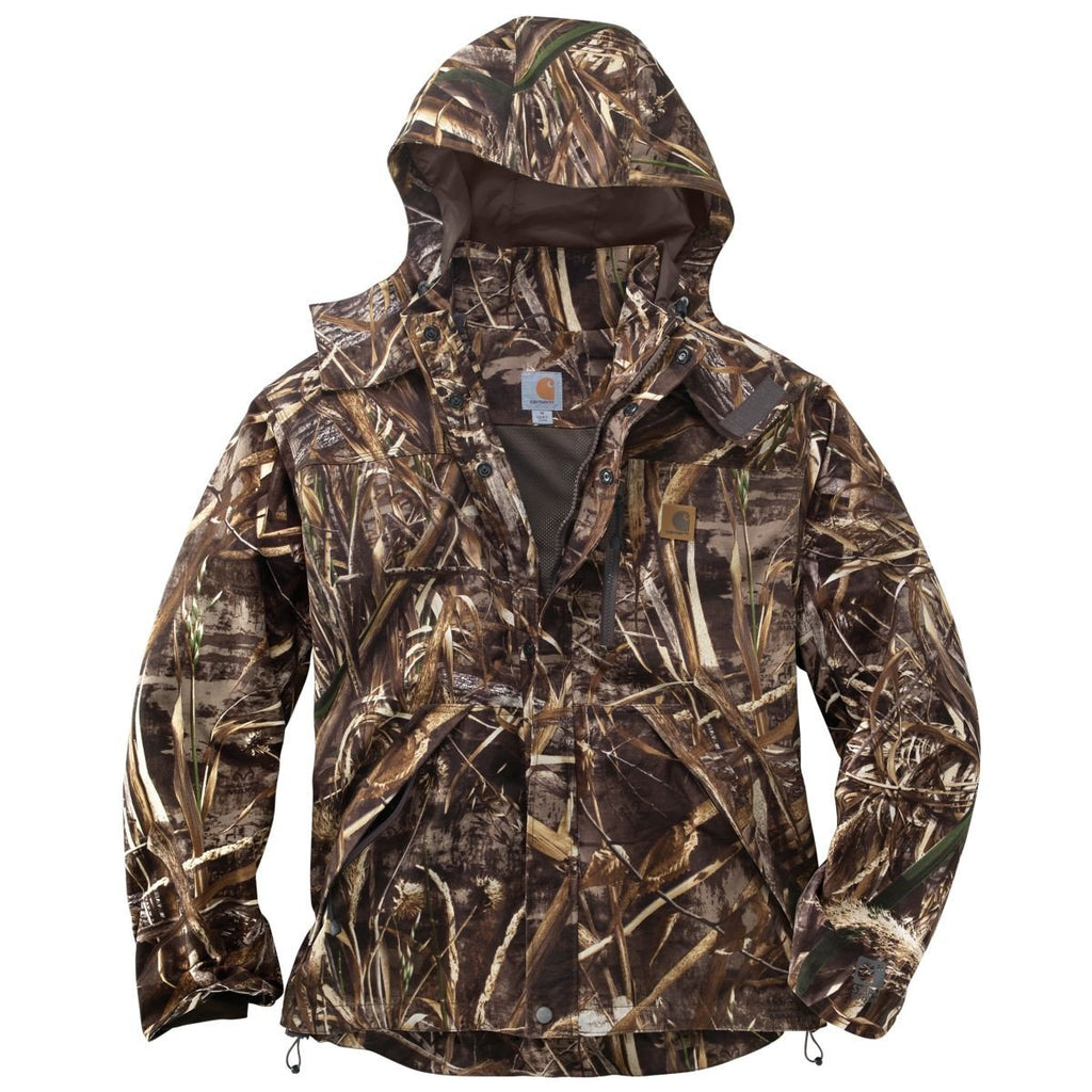 With a 100% nylon oxford shell and proprietary Rain Defender technology, Carhartt Men's Realtree Max Camo Shoreline Jacket keep you dry and warm throughout the winter. These jackets aren't just for wearing during a cold streak. Carhartt includes a polyester lining that quickly removes perspiration, as the temperatures climb during the fall and spring. Zippered underarms also play a role in keeping you comfortable outdoors. Attach your company logo to the large imprint area to give your brand more exposure in the community. Multiple pockets that snap shut offer you the perfect storage area for personal items, such as keys and electronic devices.