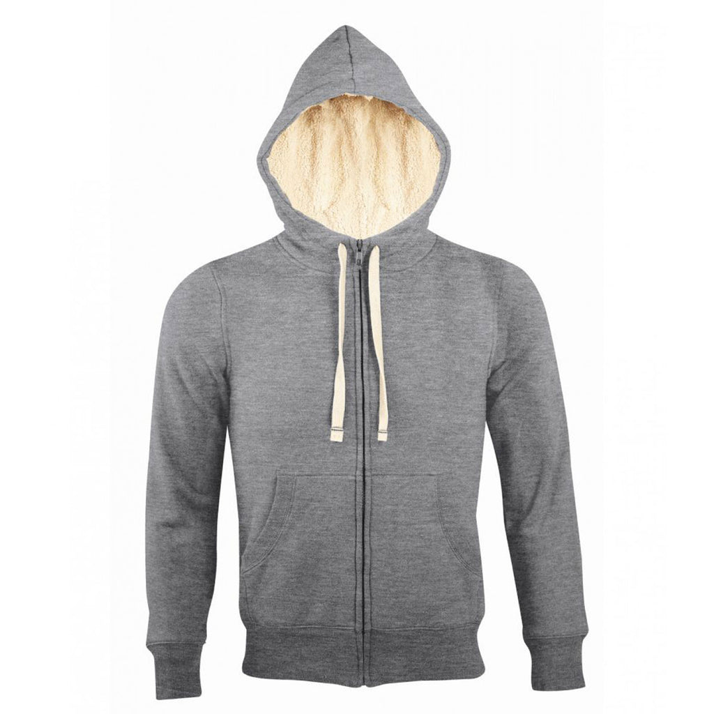 For maximum protection from the cold, whip on the SOL'S Unisex Grey Marl Sherpa Hooded Jacket with custom logo. This logoed hoodie is made from a blend of 80% cotton and 20% polyester, and the body and hood have been lined with 100% polyester cream Sherpa to add an extra layer of warmth and exceptional comfort. It is classically styled and features drop shoulder, cream drawcord and a full length covered zip. There are also front pouch pockets for storage and hand warming, as well as deep ribbed cuffs and hem to lock out the cold. Start promoting your brand with this popular hoodie. Customise with Merchology today.