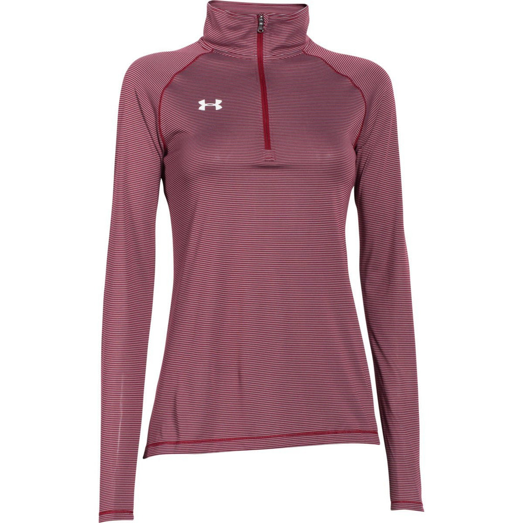 If you're interested in the warmth and protection of a 1/4 zip but not the usual bland style, there may be no better option for you than the Under Armour Women's Cardinal Steel Stripe Tech 1/4 Zip. This microstripe zip is comfortable, light, and 100% polyester, featuring Flatlock raglan sleeves. The updated Tech fabric has a softer, more natural feel for all-day comfort to keep you moving. Add your own embroidery or custom logo and you'll stand out from the crowd in style.