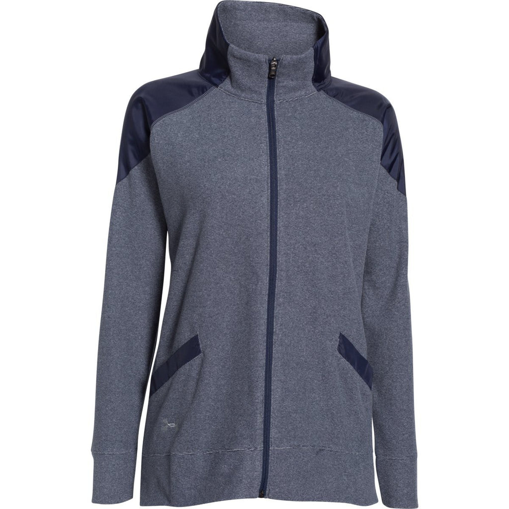 What if there was a heather fleece piece that was optimized for performance as well as comfort? We just asked the question, but we're pretty sure Under Armour beat us to the punch. That's because they've already produced this Under Armour Women's Midnight Navy UA Performance Fleece Full Zip Jacket, featuring extra-soft heather fleece for trapping in the heat without ever feeling too muggy. The full zip front allows you to customize your own breathability, which is perfect for those mixed-weather days where you're not sure what the forecast really means. Add your custom logo to the front to make this an ideal uniform for teams, companies, events, or even just getting out and enjoying the outdoors.