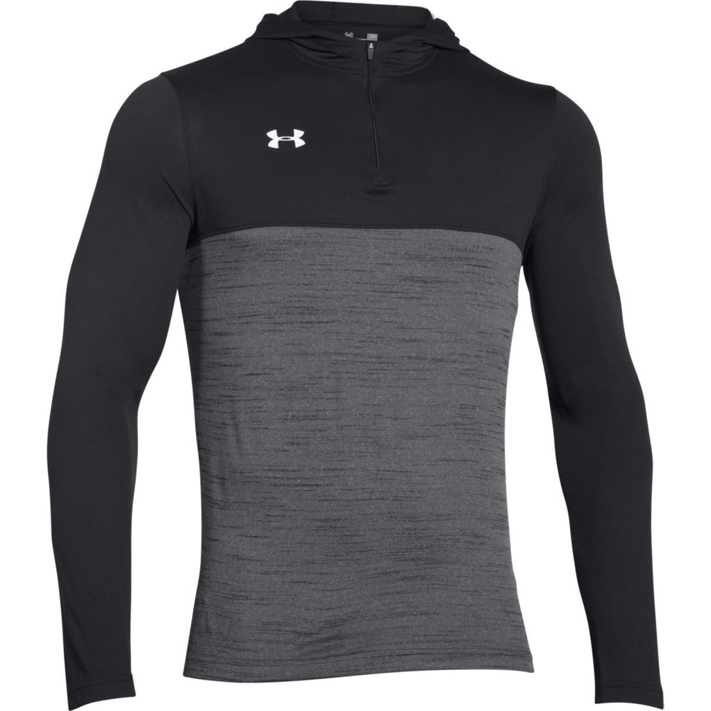 Let's get serious about hoodies for a moment, shall we? For far too long, the hoody has been relegated to the position of "housewear." That is, you'll wear it inside the house, a walk to the convenience store, on the way to class…and not much more. Why? Hoodies like this Under Armour Men's Black Tech Quarter Zip Hoody are ready for so much more, thanks to features like UA Tech fabric that's soft enough for an around-the-house feeling even when you're at the gym. And with a Moisture Transport System ready to wick sweat away, you'll have no problem staying dry, either. All that's necessary to complete the hoody's transformation to true outerwear is your own custom logo added to the front.
