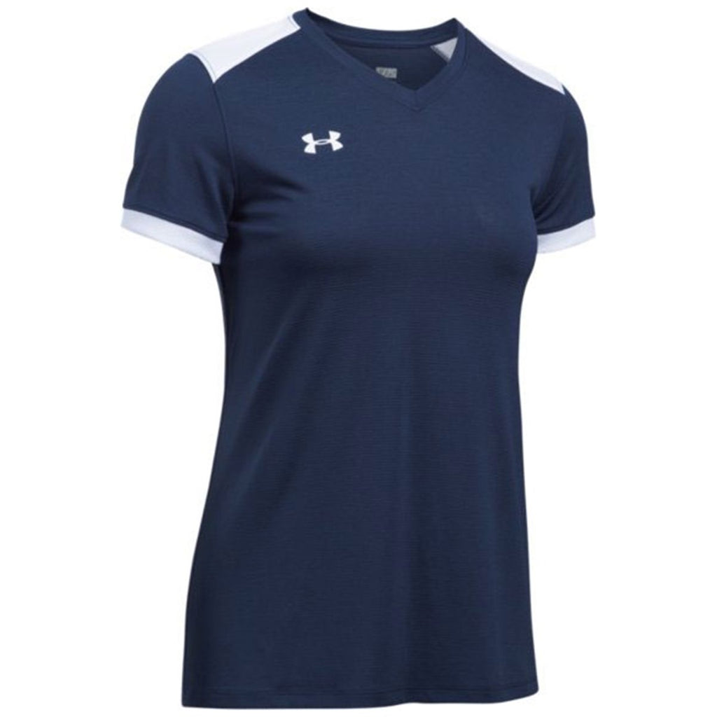 Reward the female members of your corporate team by giving the custom logoed Under Armour Women's Midnight Navy Threadborne Match Jersey. Tough to rip and tear polyester makes the athletic corporate apparel perfect for wearing at company softball games or on your next trip to the gym. This t-shirt is also a great option as the first layer under a full zip or hoodie on the colder days of the year. Enjoy increased movement flexibility in every direction because of the stretch fabric. Proprietary Under Armour Threadborne Microthread fabric quickly removes moisture to prevent any discomfort. Add your corporate logo on the large imprint area to convert customer prospects into loyal patrons of your business.