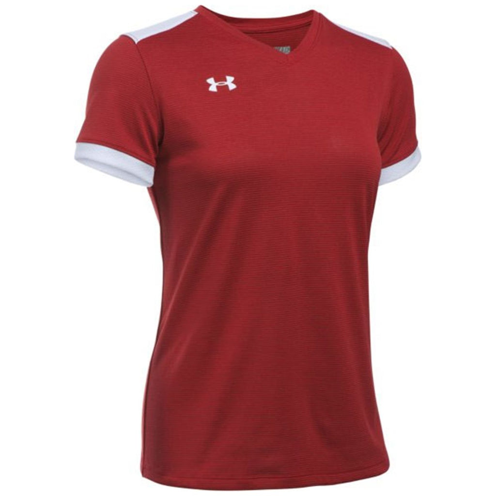 Reward the female members of your corporate team by giving the custom logoed Under Armour Women's Red Threadborne Match Jersey. Tough to rip and tear polyester makes the athletic corporate apparel perfect for wearing at company softball games or on your next trip to the gym. This t-shirt is also a great option as the first layer under a full zip or hoodie on the colder days of the year. Enjoy increased movement flexibility in every direction because of the stretch fabric. Proprietary Under Armour Threadborne Microthread fabric quickly removes moisture to prevent any discomfort. Add your corporate logo on the large imprint area to convert customer prospects into loyal patrons of your business.