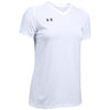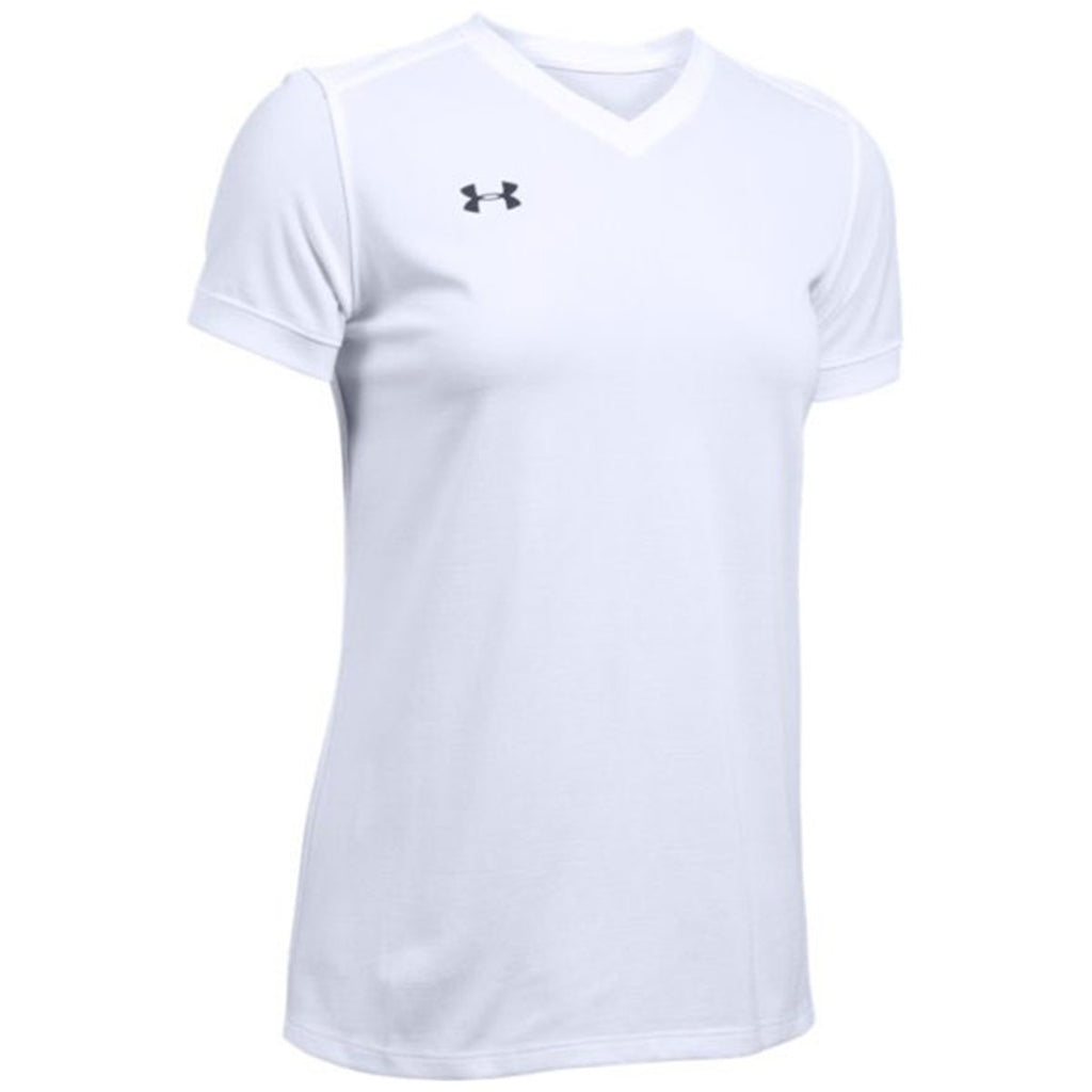 Reward the female members of your corporate team by giving the custom logoed Under Armour Women's White Threadborne Match Jersey. Tough to rip and tear polyester makes the athletic corporate apparel perfect for wearing at company softball games or on your next trip to the gym. This t-shirt is also a great option as the first layer under a full zip or hoodie on the colder days of the year. Enjoy increased movement flexibility in every direction because of the stretch fabric. Proprietary Under Armour Threadborne Microthread fabric quickly removes moisture to prevent any discomfort. Add your corporate logo on the large imprint area to convert customer prospects into loyal patrons of your business.
