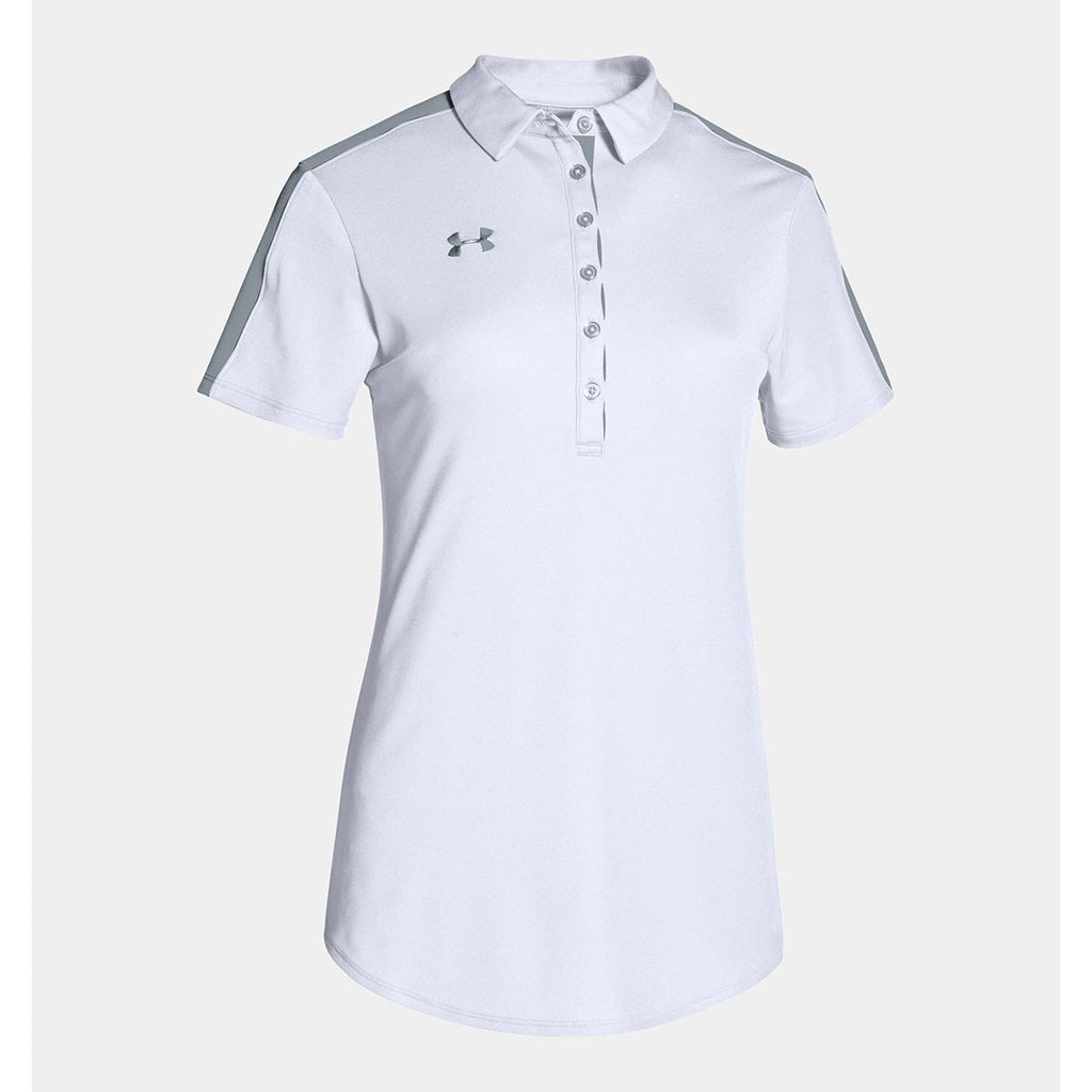 There's something to be said for the classic minimalism of the standard American polo. But you're not here for the standard. You want something a little bit different-something with a little bit of oomf. This Under Armour Women's White Team Colorblock Polo is the perfect way to stand out from the crowd while still maintaining that same classic style you've always loved. The quality collar and the sturdy buttons are perfect details that will make it easy to wear this polo again and again, particularly if you remembered to add on your custom or corporate logo to add to this shirt's branding appeal.