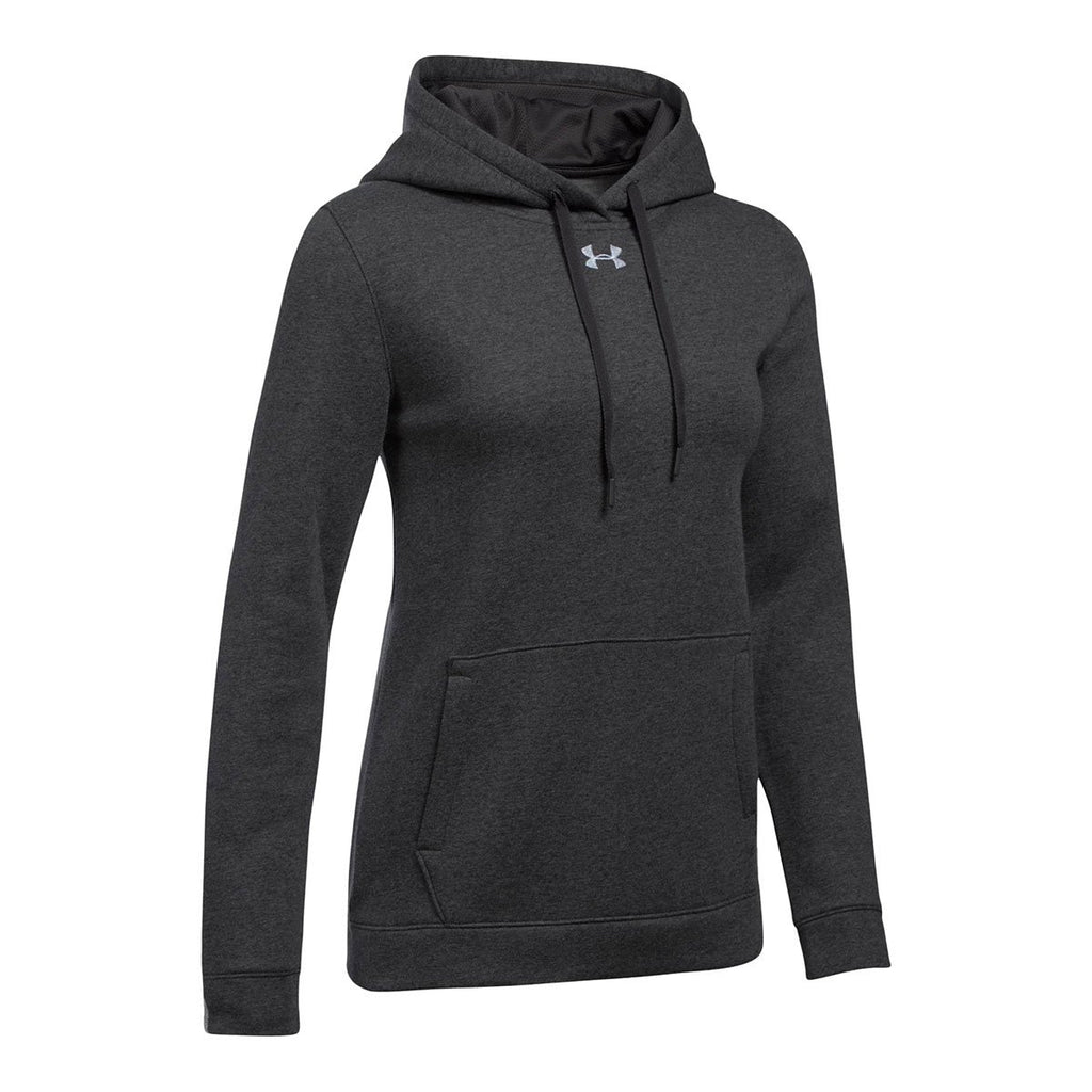 Hustle online and order the logoed Under Armour Women's Carbon Heather Hustle Fleece Hoody from Under Armour. The multi-purpose hoodie contains a cotton and polyester blend that deliver the one-two fashion punch of optimal comfort and long lasting durability. Rugged polyester resists the types of rips and tears that relegate other styles of hoodies to the Goodwill drop box. Ribbed hem and cuffs create a stylish appearance that will grab the attention of professional peers at industry trade shows. Take advantage of the attention by attaching a custom logo on the large imprint area. Use the classic kangaroo pocket to store electronic devices.