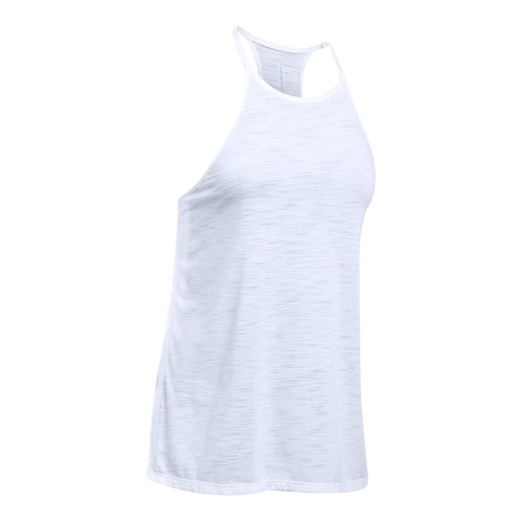When you want unrestricted body movement, order the embroidered Under Armour Women's White Threadborne Fashion Tank. The sleek tank doubles as an only layer during sweltering summer days and as a first layer for a winter fashion ensemble. Enjoy the fullest range of arm motion with extra-wide armholes. The extra-wide armholes come in handy during home improvement projects that require you to reach hard to access spots in your yard. Breathable fabric cools your upper torso throughout the day. Add your corporate logo on the large imprint area to expand awareness of your brand at professional networking events.