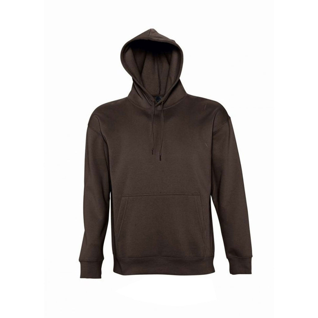 Simple and effective, everyone could use a branded SOL'S Unisex Chocolate Slam Hooded Sweatshirt in their wardrobe. This pullover style logoed hoodie is made from a blend of cotton and polyester. It has modern styling thanks to the drop shoulder and self colour flat drawcord. Brushed fleece backing provides an extra layer of warmth, and front pouch pocket comes in handy when you want to warm your hands. The cuffs and hem are also ribbed for a secure fit that will keep the cold at bay. It weighs 320 gsm, making it ideal for the cooler months of the year. There's a colour to suit every corporate logo, so have yours customised by Merchology for staff uniforms and giveaways today.