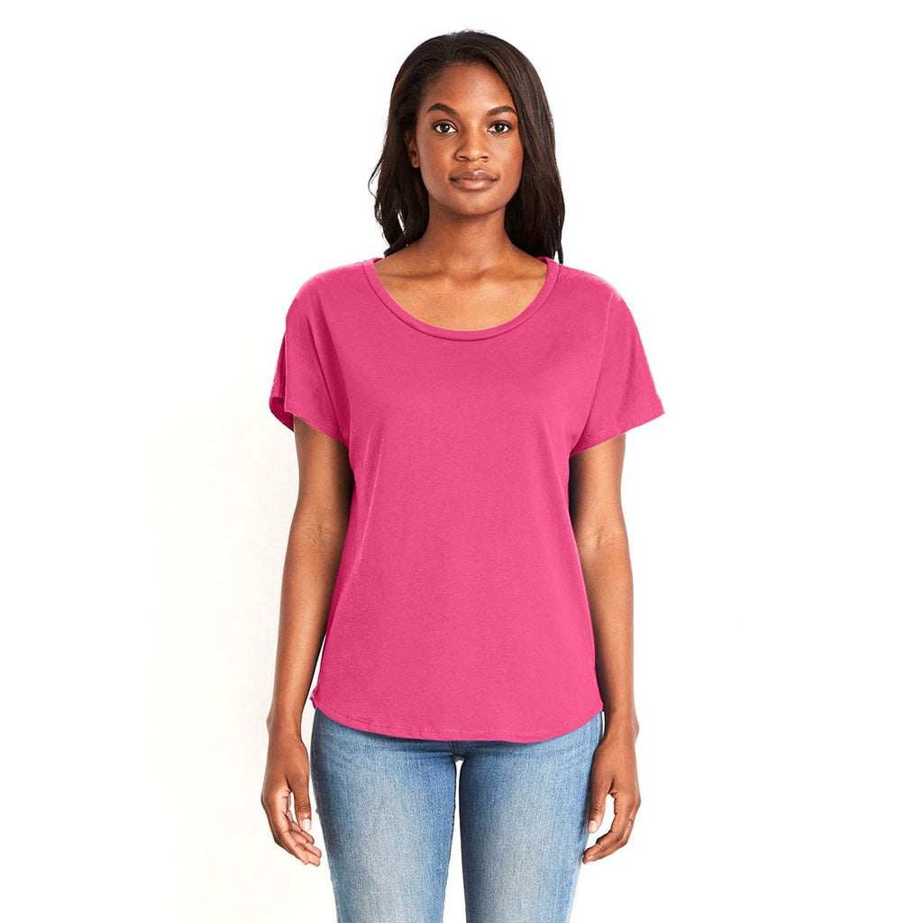 Many women like to wear a pullover shirt that has at least a little cap sleeve, and the Next Level Women's Hot Pink Ideal Dolman is a perfect example. This is such a stylish and chic design that your custom logo will tell the world that you understand the wants and needs of your customers. Whether you use this shirt for a corporate promotion or a sponsorship event, the ladies will be happy to wear it time after time. It features a relaxed fit and the fabric has been pre-laundered. It also has a tear-away label. Available in sizes XS to 3XL you have a dozen different colors to select including mint, red and turquoise.