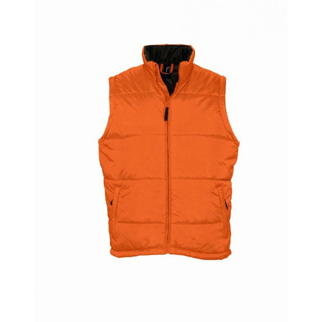 Anyone can wear the SOL'S Unisex Orange Warm Bodywarmer, and it's guaranteed to provide exceptional warmth without any restriction of movement. Constructed from 210T nylon outer, this body warmer is tough and durable and is ready to be embroidered with your company logo. It is padded with polyester and also has a dark grey nylon lining for visual interest. It is showerproof, and it also has a chin guard to keep your neck warm. There are two front pockets as well as a phone pocket, so it isn't short on utility value. It's a warm, stylish and practical layering pieces for the cooler seasons. Add your company logo and use for your next giveaway or for promo merch.