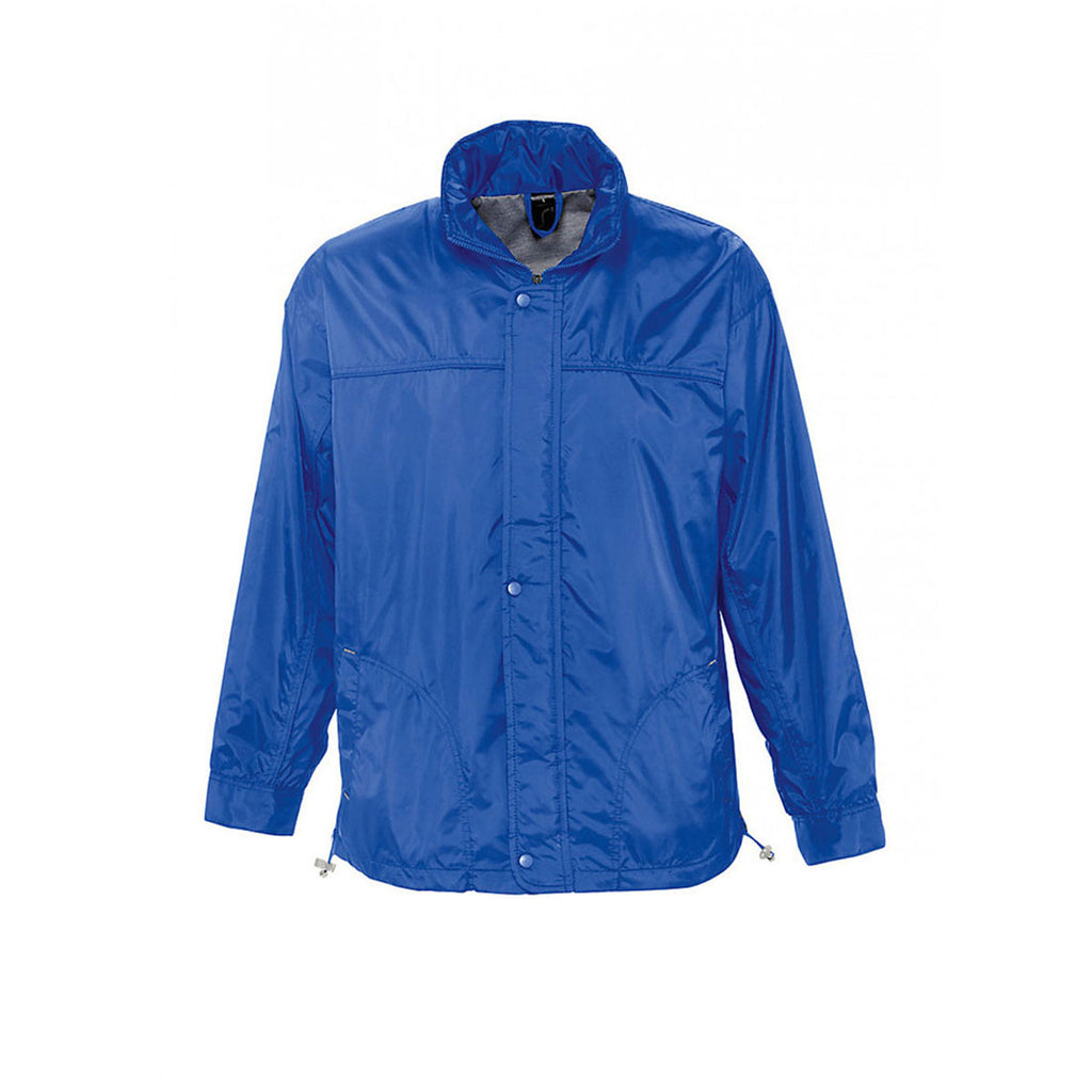 The custom logoed SOL'S Men's Royal Blue Mistral Lined Windbreaker Jacket is comfortable, affordable and practical for when the weather takes a turn. This branded jacket is made from 210T nylon outer with polyester jersey lining, and it's ready to be embroidered with your company logo. It packs away easy, and it features a concealed hood with drawcord + collar high full-length zip with studded storm flap. Ventilation eyelets prevent you from overheating, whilst multiple pockets including a designated phone pocket come in handy for storage. Many parts of this jacket are adjustable to ensure optimal fit. Choose a colour to match your corporate image and have it embroidered for staff uniforms, promo merch and giveaways.