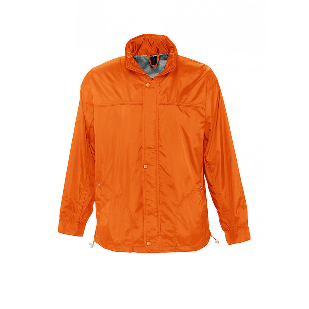 The custom logoed SOL'S Men's Orange Mistral Lined Windbreaker Jacket is comfortable, affordable and practical for when the weather takes a turn. This branded jacket is made from 210T nylon outer with polyester jersey lining, and it's ready to be embroidered with your company logo. It packs away easy, and it features a concealed hood with drawcord + collar high full-length zip with studded storm flap. Ventilation eyelets prevent you from overheating, whilst multiple pockets including a designated phone pocket come in handy for storage. Many parts of this jacket are adjustable to ensure optimal fit. Choose a colour to match your corporate image and have it embroidered for staff uniforms, promo merch and giveaways.