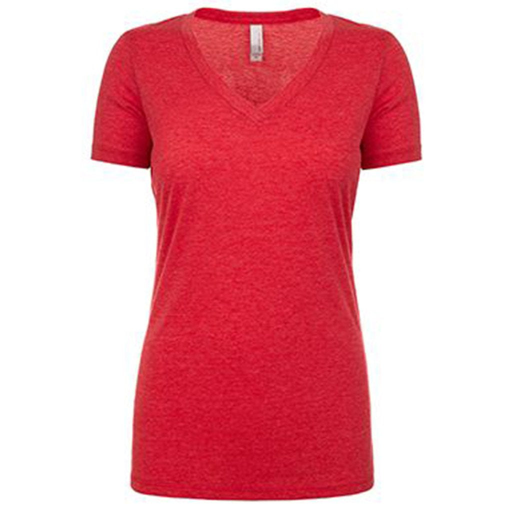 Remember how you bought that one tee shirt that completely overhauled your wardrobe and made you feel like you always had something to wear? No? Then it's time to get a tee that can actually do that for you. This Next Level Women's Red Poly/Cotton V-Neck Tee will be the ideal layering piece, the ideal accompaniment to a casual day around the home, and the ideal shirt you can put in the washer and dryer and wear again fresh. Simply add your custom logo to make it the ideal way to represent your brand, too.