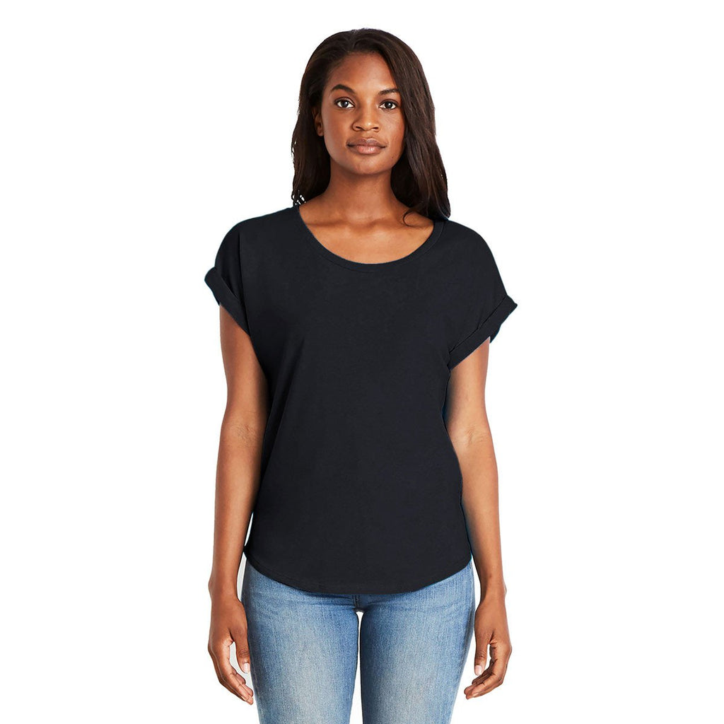 When you want your company's logo to make a huge impact with female customers, place it on a Next Level Women's Black Dolman With Rolled Sleeves. It has a style that is in high demand. The rounded scoop neck and rolled short sleeves are in fashion and extremely desirable. When you use this shirt as a promotion or give-away you will be perceived as a thoughtful and professional on all levels. It features a relaxed fit and the fabric has been pre-laundered. It also has a tear-away label. Available in sizes XS to 2XL you can choose from black, heather grey, red, turquoise, and white.