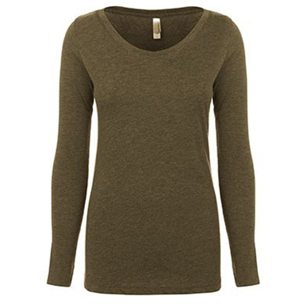 If you need a subtle touch but don't want to give up on your tees, then this Next Level WoMen's Military Green Triblend Long-Sleeve Scoop Tee is exactly what you've been waiting for. Sure, you can customize it by adding on your logo with Merchology. But there's more here we want to call your attention to, including the fact that the quality, comfortable fabric is enough to make you feel like you're wearing the right shirt every single time you put this tee on. Enjoy this tee as a layering piece or as a featured piece and you'll be able to mix up your wardrobe easily.