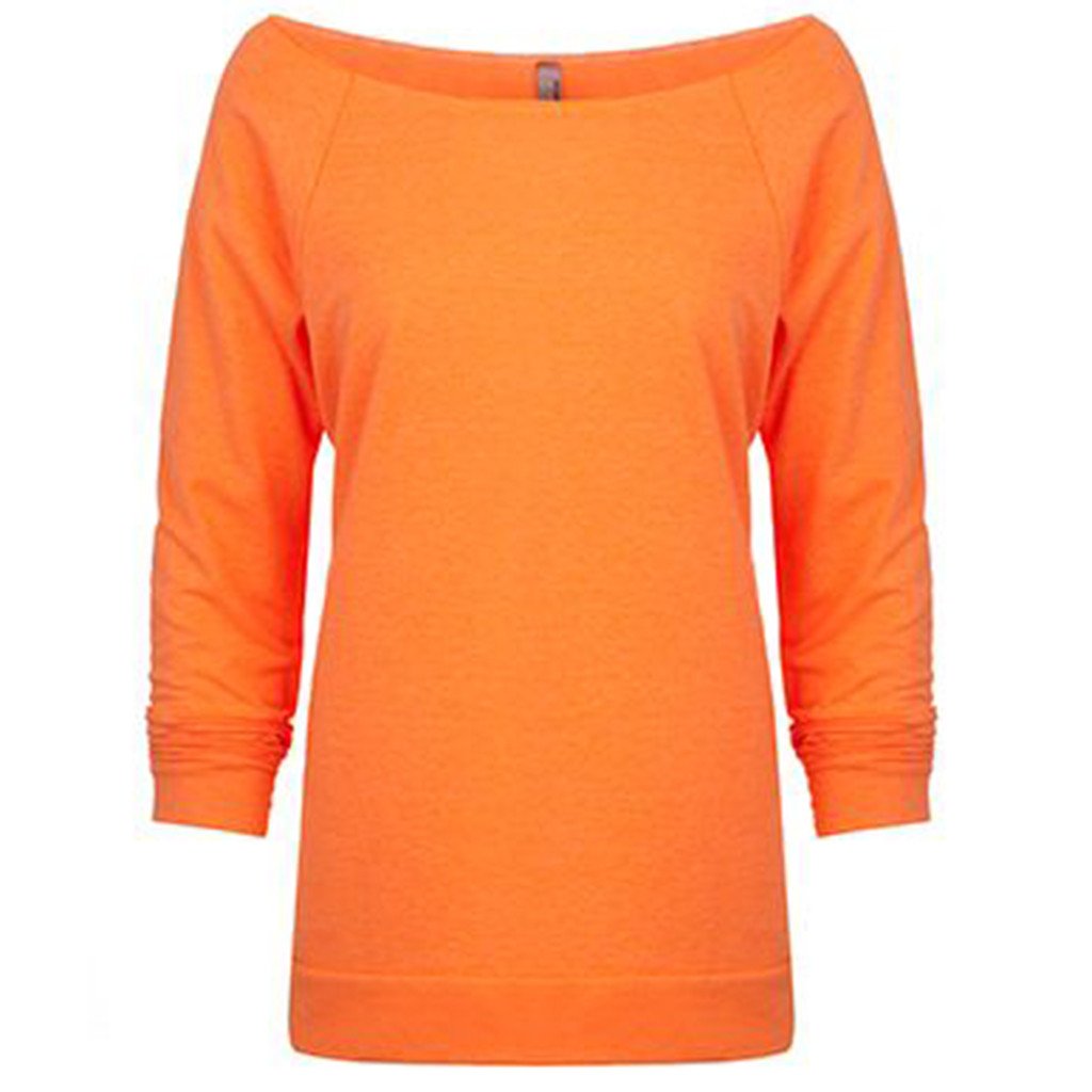 Let's say that you're sick of plain tees and need something more from your wardrobe. But you're not quite willing to give up the usual comfort and enjoyment of wearing a tee. Where do you turn? You turn, of course, to the brilliance of the raglan tee. Specifically, you turn to this Next Level WoMen's Neon Heather Orange Terry Raw-Edge 3/4-Sleeve Raglan Tee, with all that it has to offer both sartorially and by way of comfort. it's the kind of tee that you add to your wardrobe and instantly forget what life was ever like without it. Just add your custom logo to up the "wow" factor and you've got a winner.