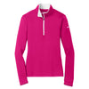 There's a reason why Nike is the most popular sportswear brand in the world: items like the Nike Women's Bright Pink/White Dri-FIT Stretch 1/2-Zip. Comfortable, fashion-forward, and tailor made for your company logo, this is one heck of a quarter zip.