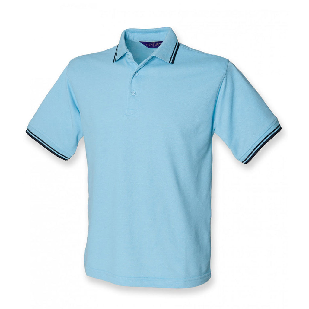 Henbury Men's Sky/Navy Tipped Poly/Cotton Pique Polo Shirt