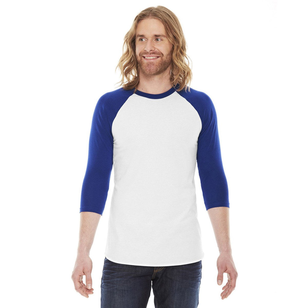 There's nothing that says "I'm up for the weekend" quite like a baseball raglan tee. Of course, you don't want just any baseball tee to make your weekend; you only want the very best. For that we offer the American Apparel Unisex White/Lapis Poly-Cotton Baseball Raglan Tee. At fifty-fifty combed cotton and polyester, it's comfortable enough for the hot days and durable enough for many days. It makes for a great canvas for your custom printing, whether you're building an actual business out of your team or building a team out of your business, or simply having a team-building activity that the family can enjoy.