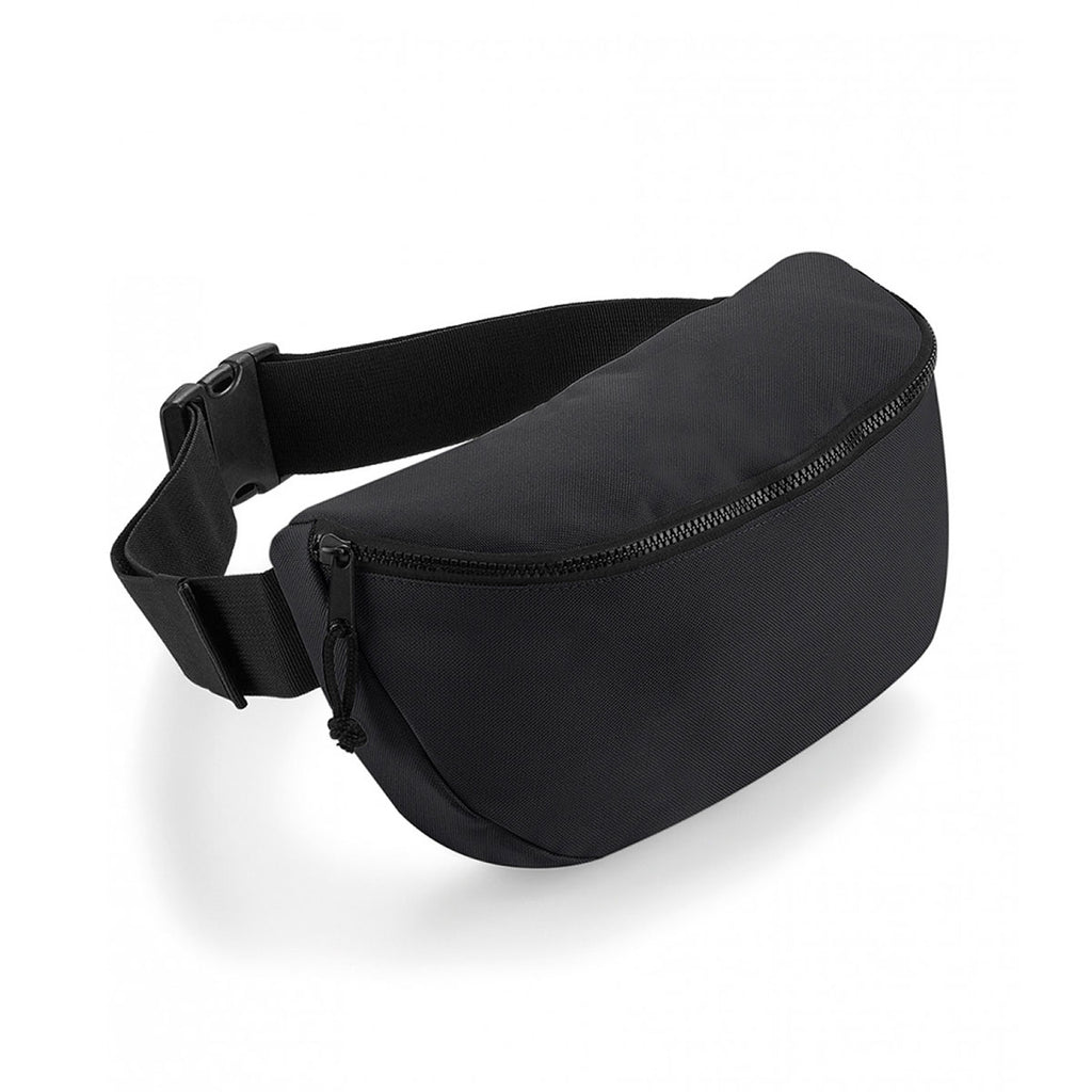 The BagBase Black Oversized Belt Bag is a great hands-free way to take your belongings with you on the go. This throwback item is the perfect place to ensure your custom logo or design gets lots of notice and draws lots of attention. Available in classic color options that are easy to wear, this Belt Bag's broad exterior is the perfect place to show off your brand's unique style. This item features a secure clip fastener and key hook for added convenience. Along with a large main pocket, there is also a rear zip pocket and internal mesh pockets to keep your belongings organized.