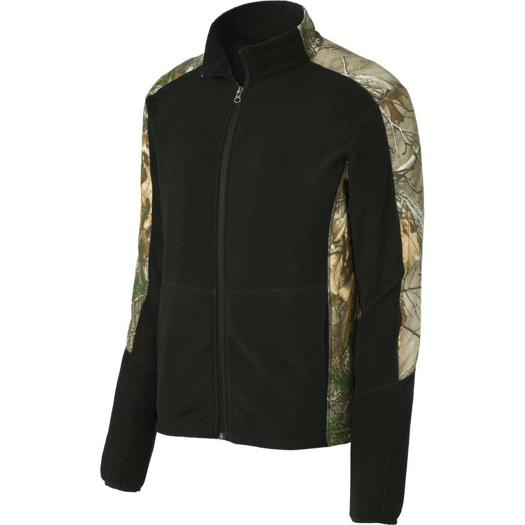 Authentic Realtree camouflage runs down the shoulders and arms of the Port Authority Men's Black/Realtree Xtra Camouflage Microfleece Full-Zip Jacket. The camouflage design on the arms and shoulders complements the solid color covering the front and back of the jacket. Designed with 100% polyester microfleece, the lightweight jacket includes non-zippered tricot front pockets that provide convenient places to store your valuables. Anglers and hunters find the front pockets handy, especially when they need to retrieve something in a hurry. Attach your corporate logo to the large imprint area and give the stylish jacket to high achieving members of your team.